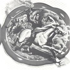 A ló veres színe az evangélium tisztaságának az elszíneződésére utal, amely a hamis tanítások eredményes elterjedéséből következik. Ekkor ugyanis már előtérbe kerültek a Nikolaiták. Vesd össze az efézusi és a pergámumi korszaknak adott kijelentéseket. Efézusban még: „az megvan benned, hogy a Nikolaiták cselekedeteit gyűlölöd, a melyeket én is gyűlölök” (2,6.). „De van valami kevés panaszom ellened, mert vannak ott nálad, akik a Bálám tanítását tartják, aki Bálákot tanította, hogy vessen botránykövet az Izráel fiai elé, hogy egyenek a bálványáldozatokból, és paráználkodjanak. Így vannak nálad is, akik a Nikolaiták tanítását tartják, amit gyűlölök.” (2,14-15.). A ló veres színe az üldöztetés és szenvedés jelképeként is elfogadható. A mártírok vérére utalhat ez a szín, hiszen ez a korszak a kegyetlen üldözések időszaka volt. A lovas fegyverzete viszont már nem az evangélium diadalmas vonulását hívatott segíteni, hiszen egy nagy kardot hordoz. Ez a kard lehetne ugyan az Isten Igéje is, hiszen „az Istennek beszéde élő és ható, és élesebb minden kétélű fegyvernél, és elhat a szívnek és léleknek, az ízeknek és a velőknek megoszlásáig, és megítéli a gondolatokat és a szívnek indulatait.” (Zsid. 4,12.). Ennek a lovasnak a kardja viszont nem a lélek orvoslására van a kezében, hanem azért, hogy „a békességet elvegye a földről, és hogy az emberek egymást öljék” (4. vers). Az üldözöttek létbizonytalanságára utal, a mártírok millióira, akiket ebben a korszakban küldött halálba a Római Birodalom. IV. A harmadik pecsét (Pergamum)A harmadik lovas bemutatásakor János egy fekete lovat és annak lovasát látja. A fekete szín azt a lelki és szellemi sötétséget és nyomort jelképezi, amelyet ez a lovas hozott magával. A fekete a fehér színnek pont az ellentéte. Vagyis a tévtanok és a pogány eszmék ebben az időben már teljes uralomra jutottak a keresztény egyházon belül. Mindezt megvalósítja a lélek halhatatlanságának tana, az új platóni filozófia, a szentek imádása, a képek, szobrok és ereklyék tisztelete, a Tízparancsolat megváltoztatása, a pogány ünnepek átvétele, és keresztény köntösbe csomagolása.